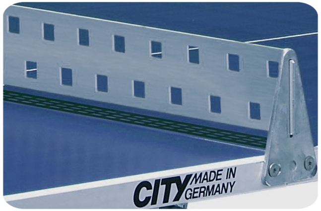 A kültéri City asztalhoz rendelhető kültéri „háló”. Perforált alumínium lemez, melyet az asztallaphoz fixen felerősített (nehezen leszerelhető) alumínium tartók tartják.