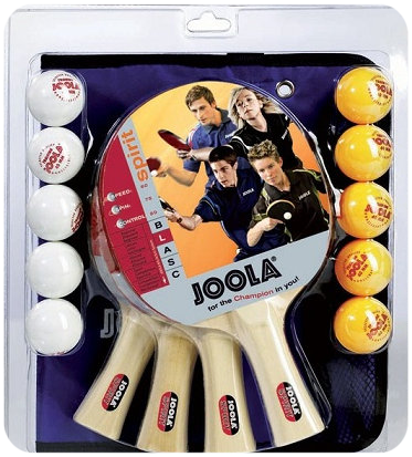Praktikus csomagolású ütőszett 4 db. Spirit ütővel, 5 db. narancssárga és 5 db. fehér labdával.