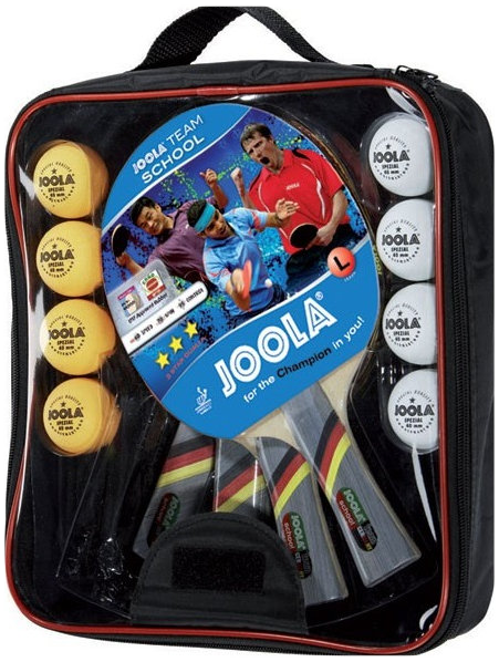 A praktikus védőtáska 4 db Team Germany School ütőt, valamint 4 db fehér és 4db sárga labdát tartalmaz.